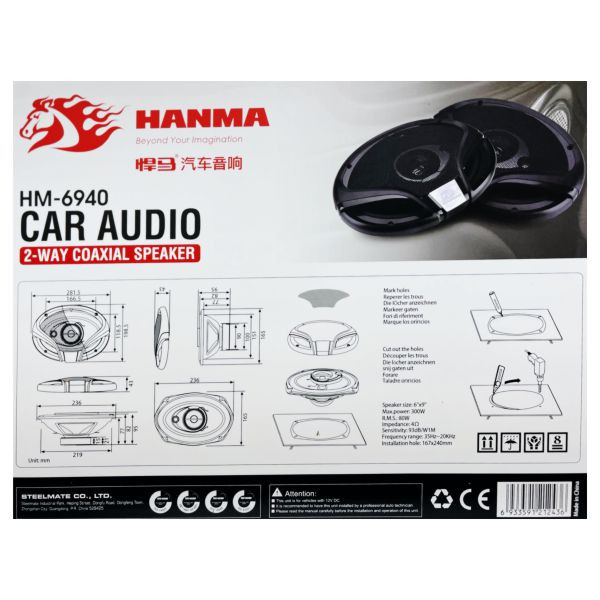 این مدل اسپیکر دارای بیشینه صدای خروجی 300 وات می باشد. بدین معنا که این اسپیکر قدرت صدای خروجی بالایی دارد. قدرت صدای خروجی موضوعی است که برای بسیاری از افراد حائز اهمیت می باشد. HM-6940 شامل دو عدد اسپیکر بیضی شکل با سایز 6 در 9 اینچ است. فرکانس پاسخ گویی اسپیکر استیل میت 35 هرتز است. بدین معنا که صدای موزیک یا آهنگ را با این اسپیکر به وضوح خواهید شنید.